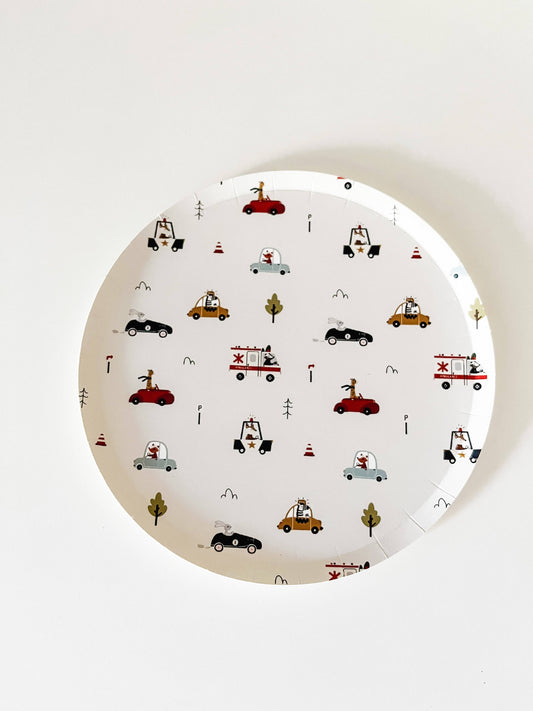 Car Patterned Birthday Dessert Plates – 7" Beige Plates (8pcs)
