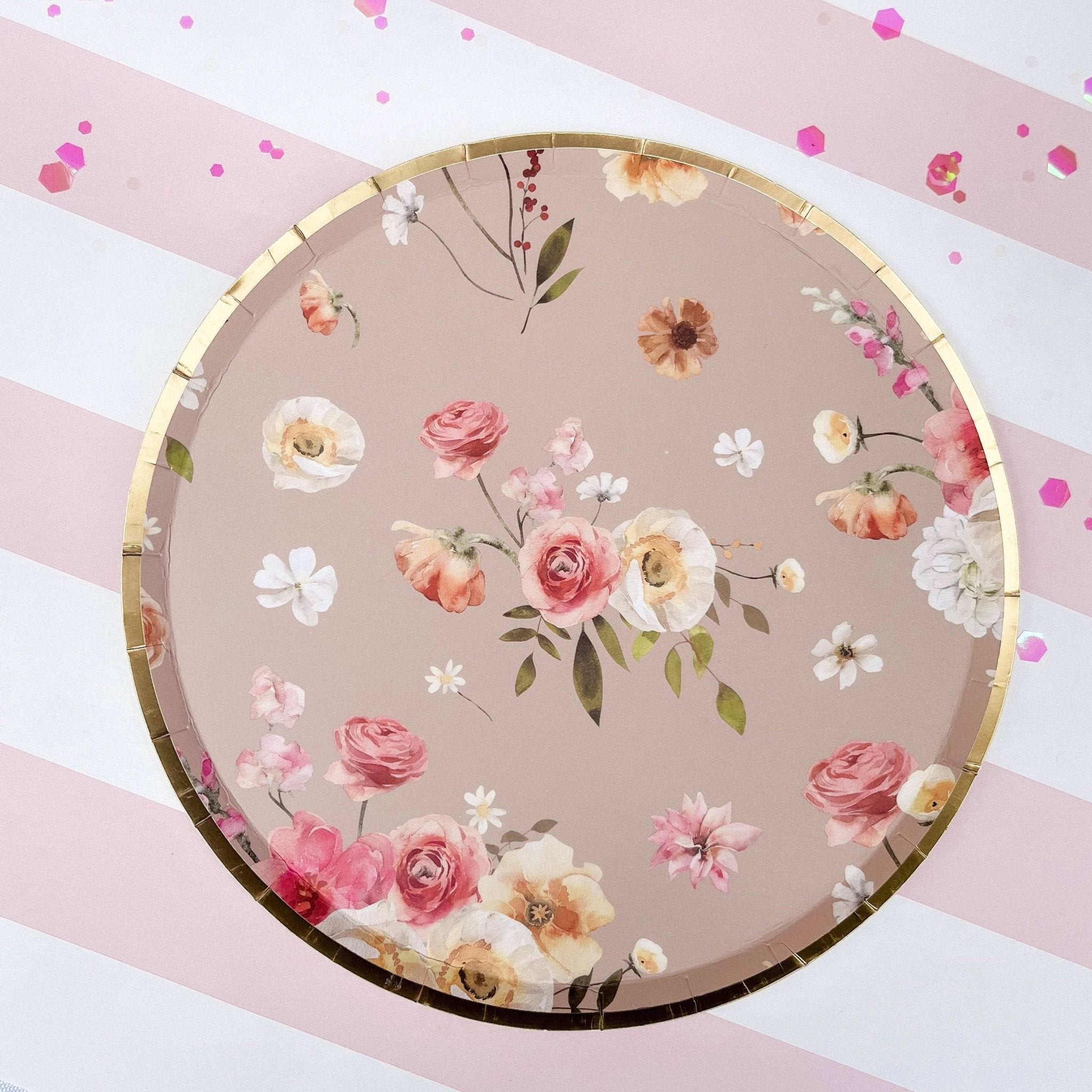 Floral Beige Paper Dessert Plate, (8pcs)