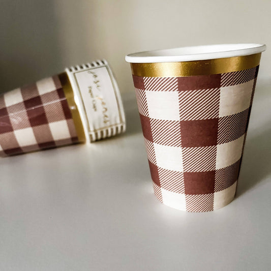 Rustic Gingham Check Plates – 11" Round with Gold Foil (8pcs)