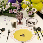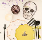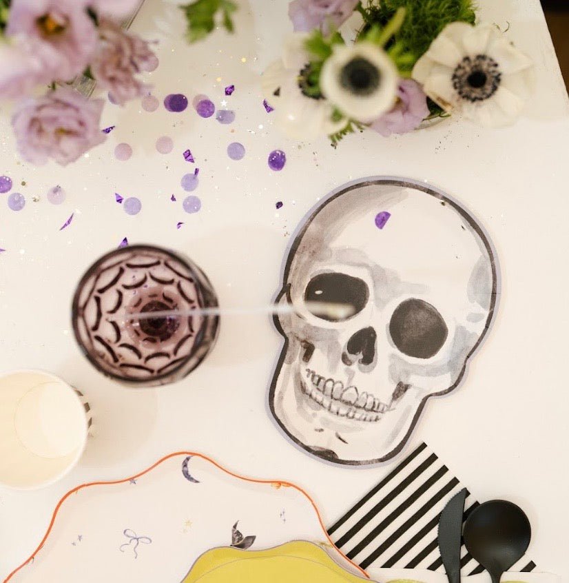 Add a spooky yet stylish touch to your Halloween festivities with our watercolor skeleton Halloween dessert plate. Featuring a unique skeleton design with a lilac purple trim, these die-cut plates are perfect for serving desserts at Halloween, Dia De Los Muertos, or even a pirate-themed party. Crafted by Paperie Off Park, they combine artistry with functionality.