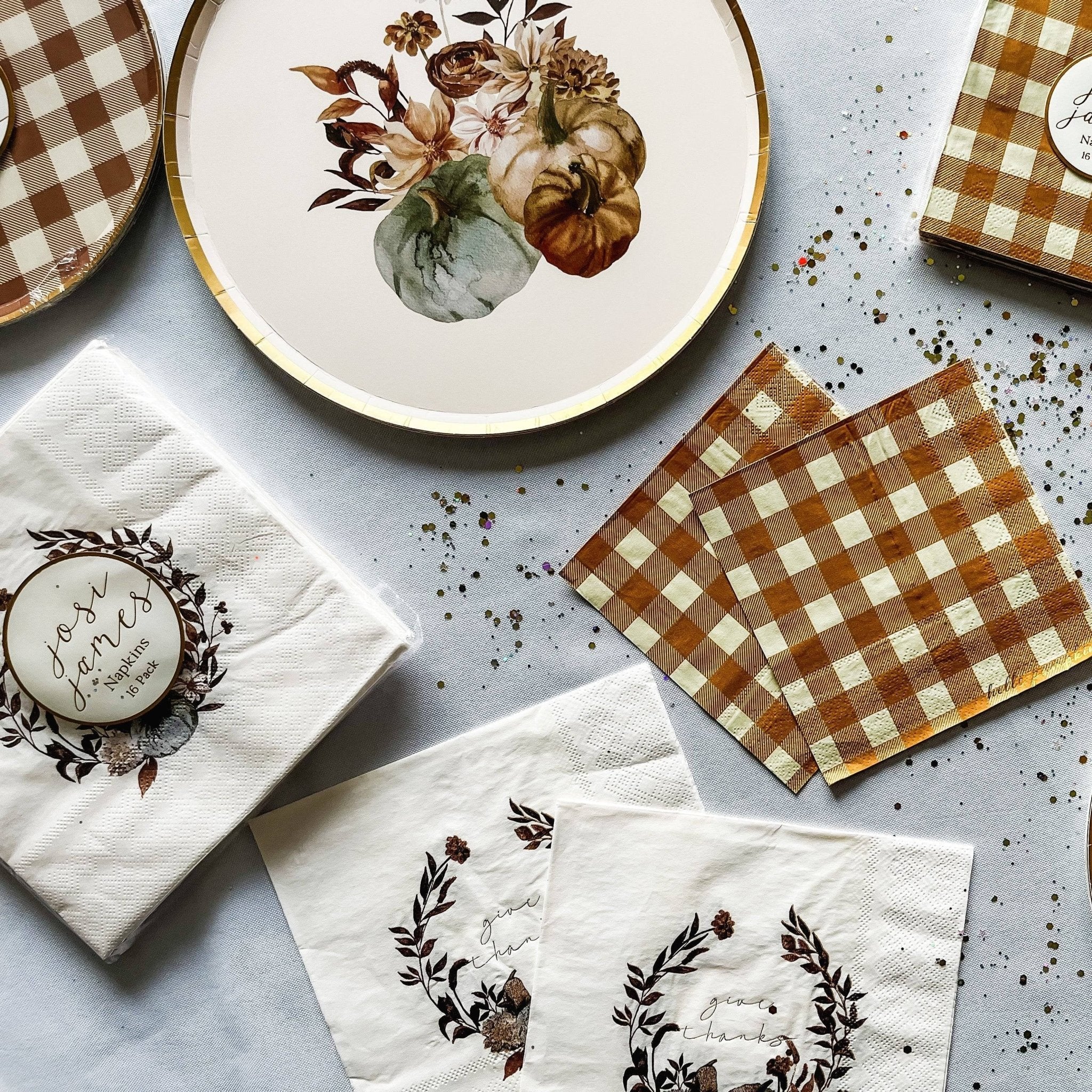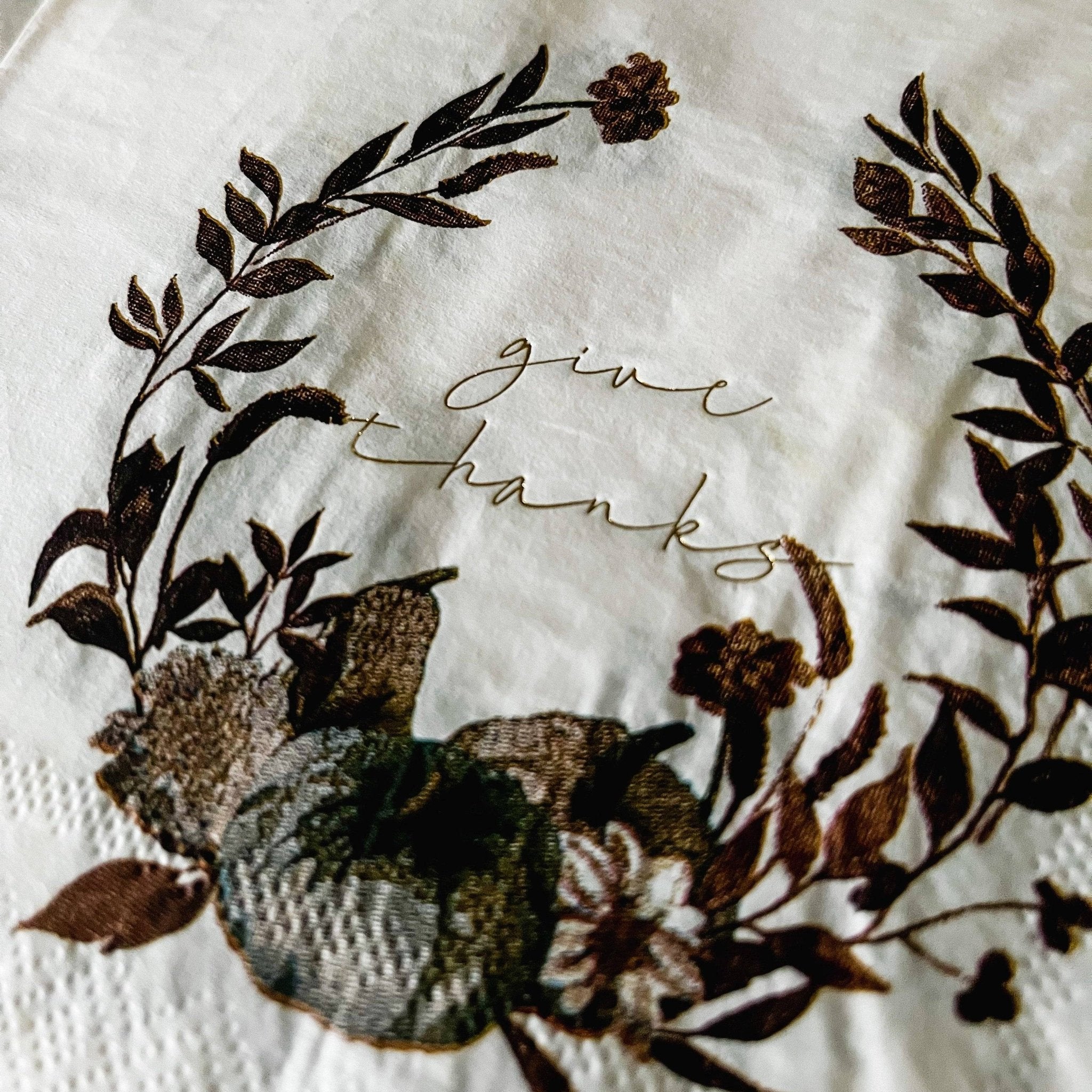 Fall Pumpkin Give Thanks Large Paper Napkins (16pcs) - Josi James - Large Napkins