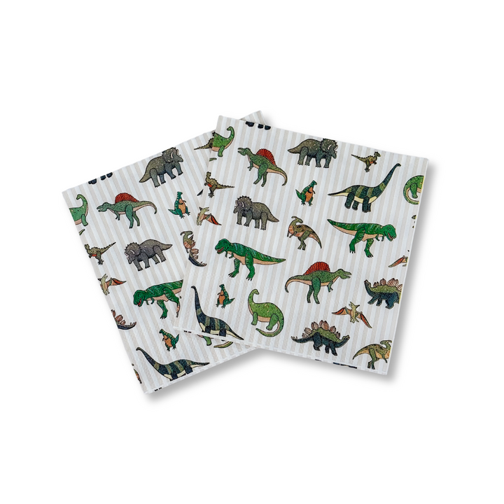 Dinosaur Striped Beverage Napkins – 24-Pack, 5x5” – Perfect for Kids’ Dino Parties!