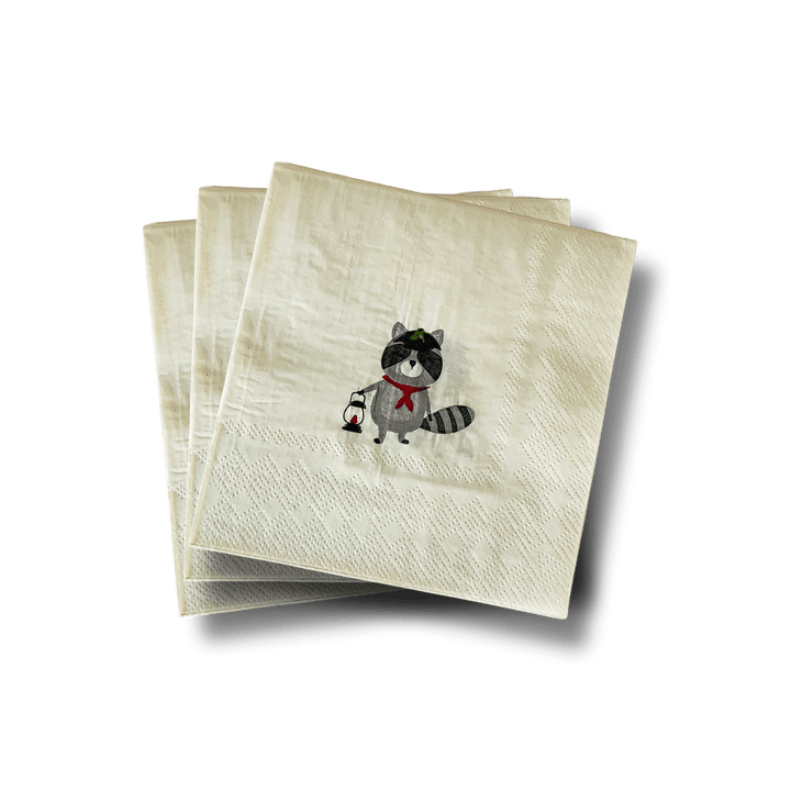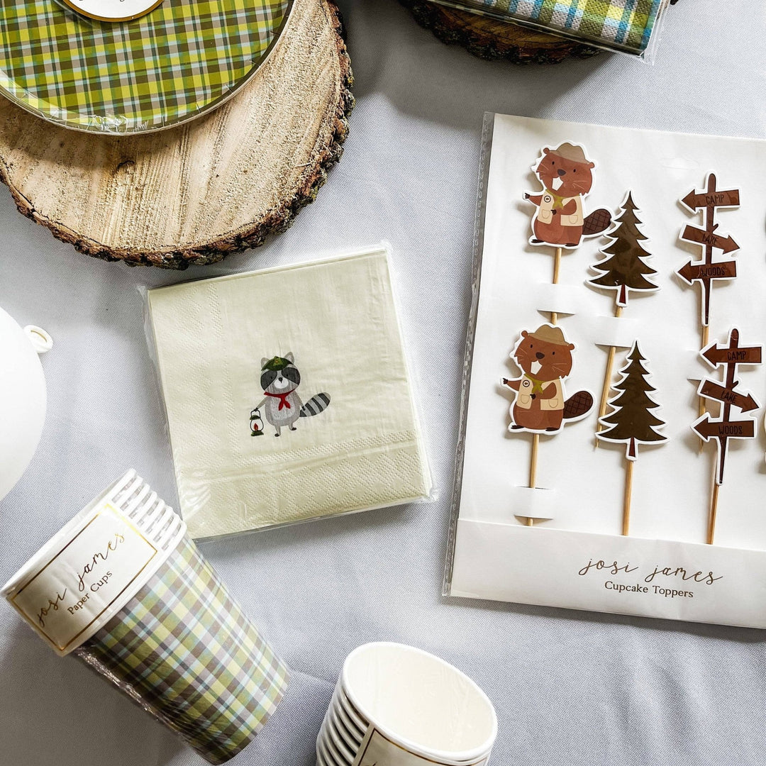 Enhance your gatherings with our Small Scout Disposable paper napkins. Crafted for durability, these napkins are perfect for cocktails, snacks, and desserts. Adorable little adventurer napkins for your camping or scout birthday party. These small cocktail napkins with a little forest camper design, a centered raccoon adventurer are an adorable touch to your outdoor or camp theme party.