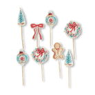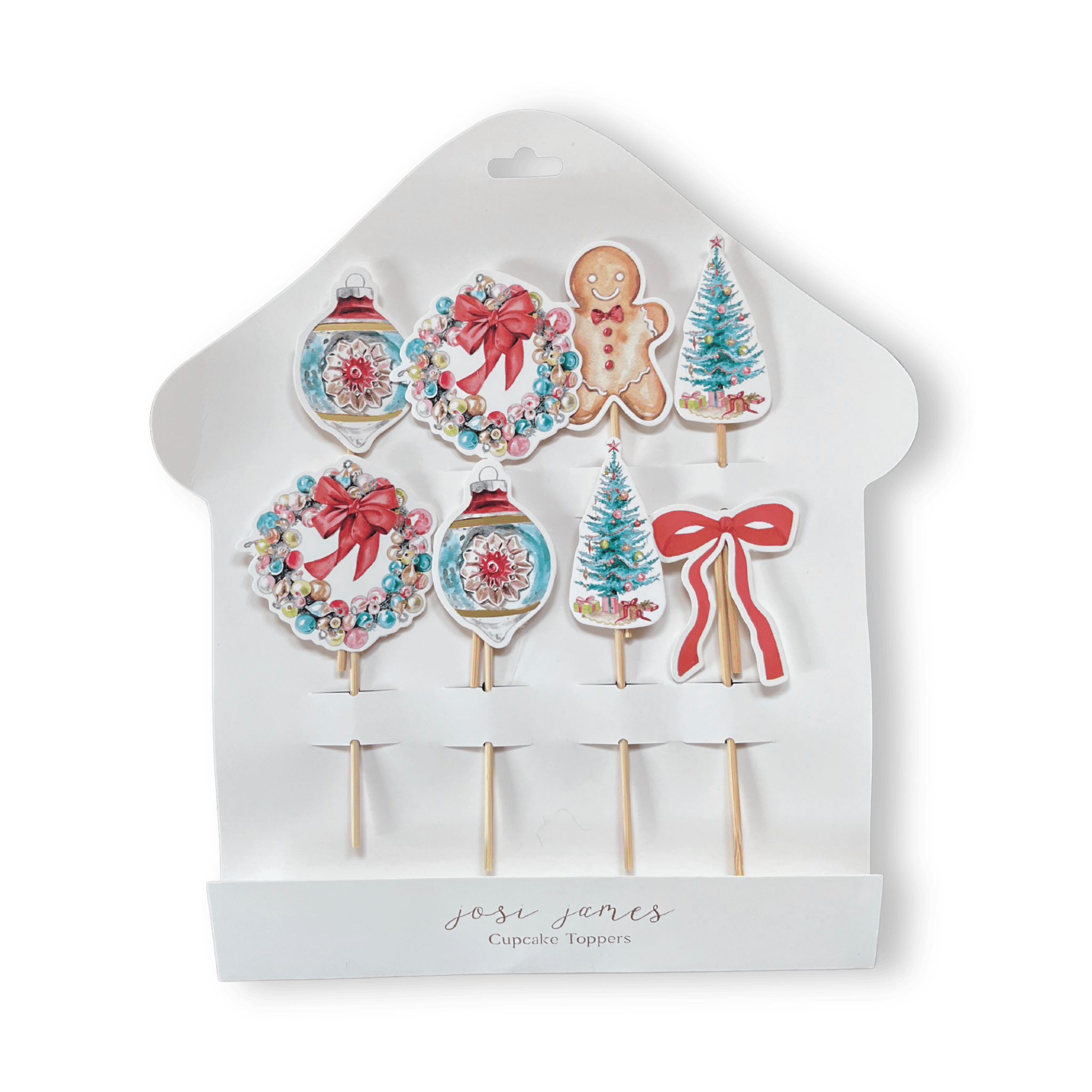 Add a touch of nostalgia to your holiday baking with these vintage Christmas cupcake toppers by Josi James x Paperie Off Park. Featuring beautifully watercolored vintage ornaments and a charming red bow, these toppers bring festive cheer to any cupcake. Made with premium quality paper and highlighted with gold foil accents, they are perfect for celebrating the season in style.