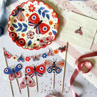 Set of 8 butterfly cupcake and food toppers. Beautiful light pink, red and blue butterfly designs.