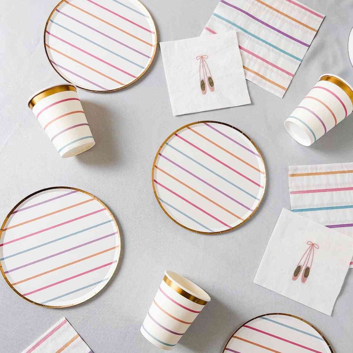 • 8 Dessert Plates – Pretty pastel striped dessert plate, 7 inches, perfect for cake or snacks.