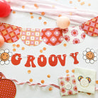 Bring some retro vibes to your party with our Groovy Banner. Perfect for bachelorette parties or any hippie-themed celebration or birthday party. The banner features bold G-R-O-O-O-V-Y letters in a burnt orange and classic retro cheerful smiley floral daisies. The 8 ft long string makes it easy to hang and adds a psychedelic touch to your vintage hippie decor.