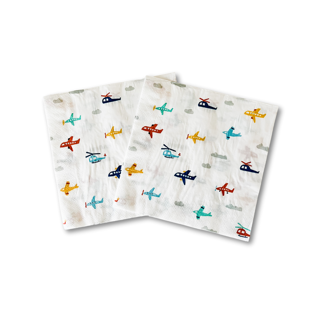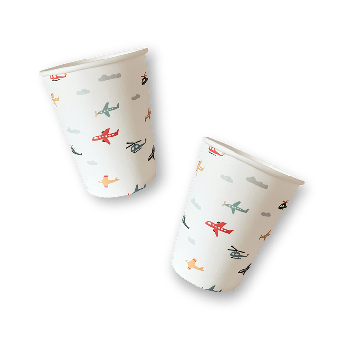 Airplane 7 Inch Plates (8pcs) x 1 Airplane Cups (8pcs) x 1 Airplane Large 6.5 x 6.5 Inch Lunch Napkins x 1 Airplane Small 5 x 5 Inch Small Cocktail Napkins x 1