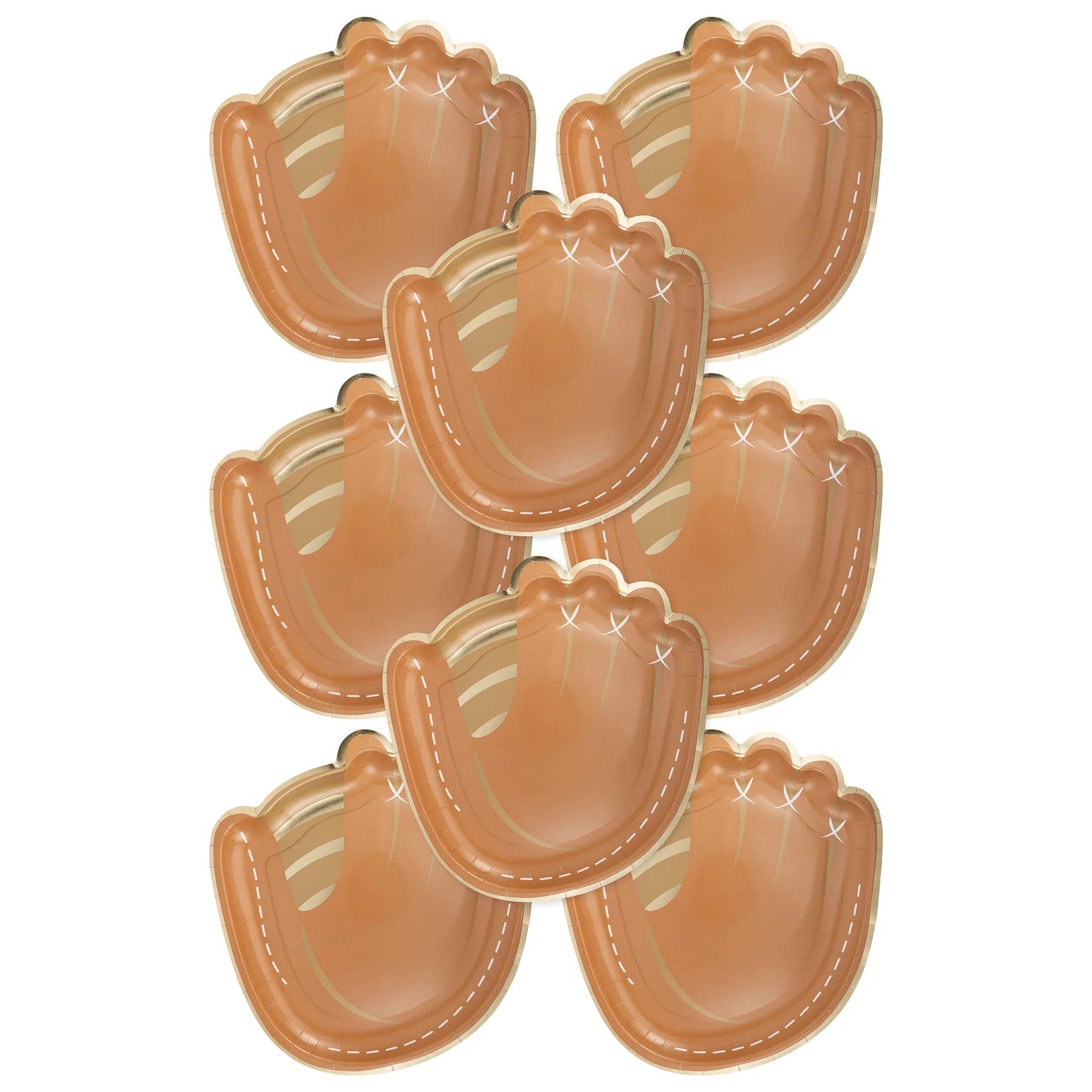 Score big with these 11" baseball mitt paper plates! Gold foil accents and sporty style make them perfect for any game day or sports party. Set of 8.