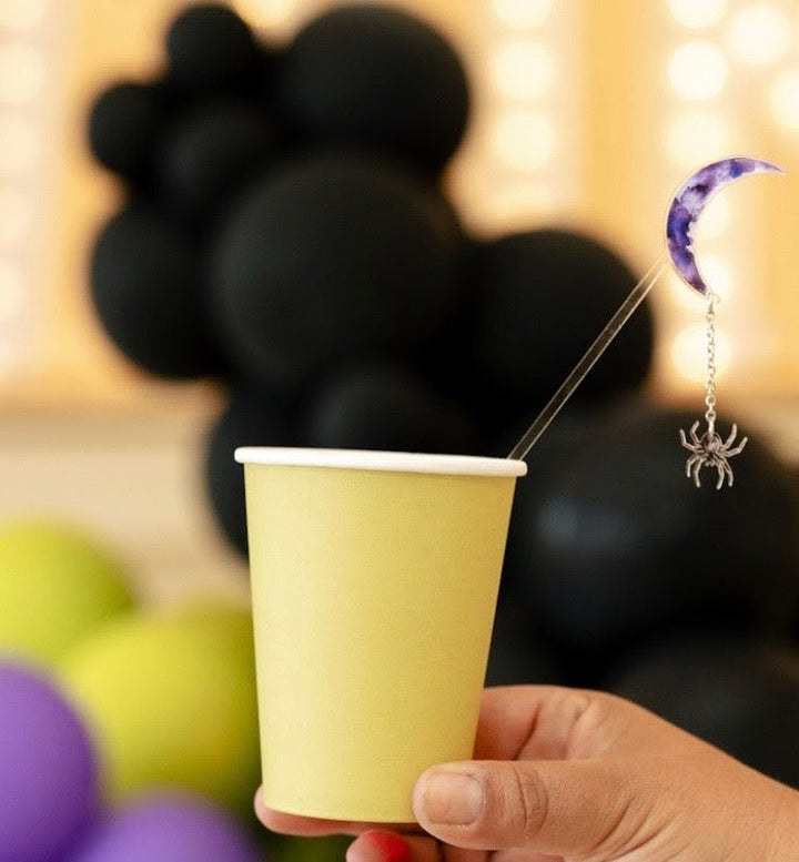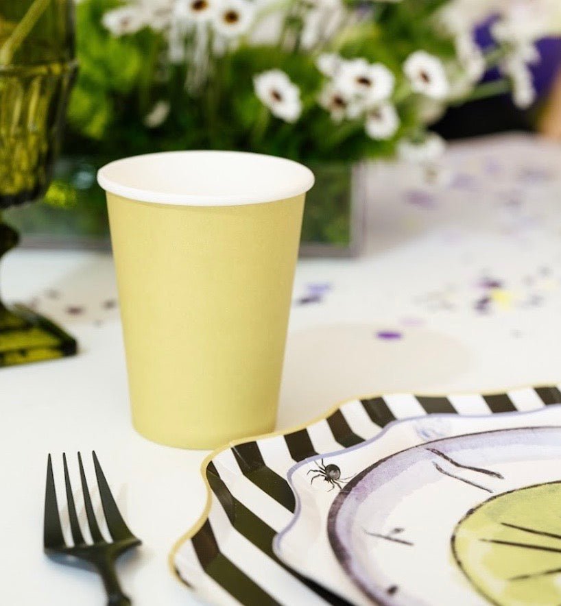 Brighten up your parties with these chartreuse solid cups. Beautiful bright chartreuse colored paper party cups. Perfect for any birthday party, baby shower, or holiday themed party! Looks adorable with many of our collections, including our Christmas and Halloween collections, Carnival collection, Fairy Collection, Retro Groovy Collection, and so much more!