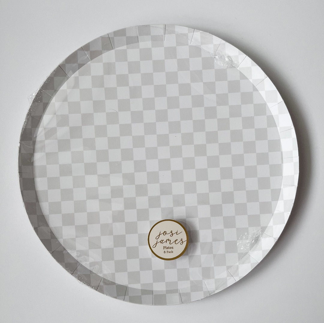 Premium Checkered Light Gray Plate (8pcs) - Josi James - 10.5 Inch Plate