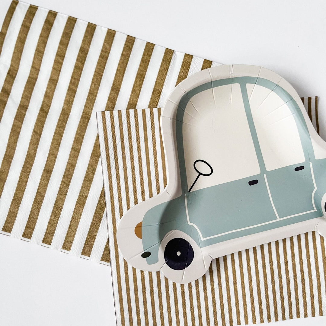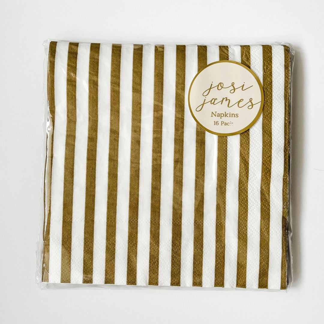 Matte Gold Striped Large Disposable Paper Napkins (16pcs) - Josi James - Large Napkins