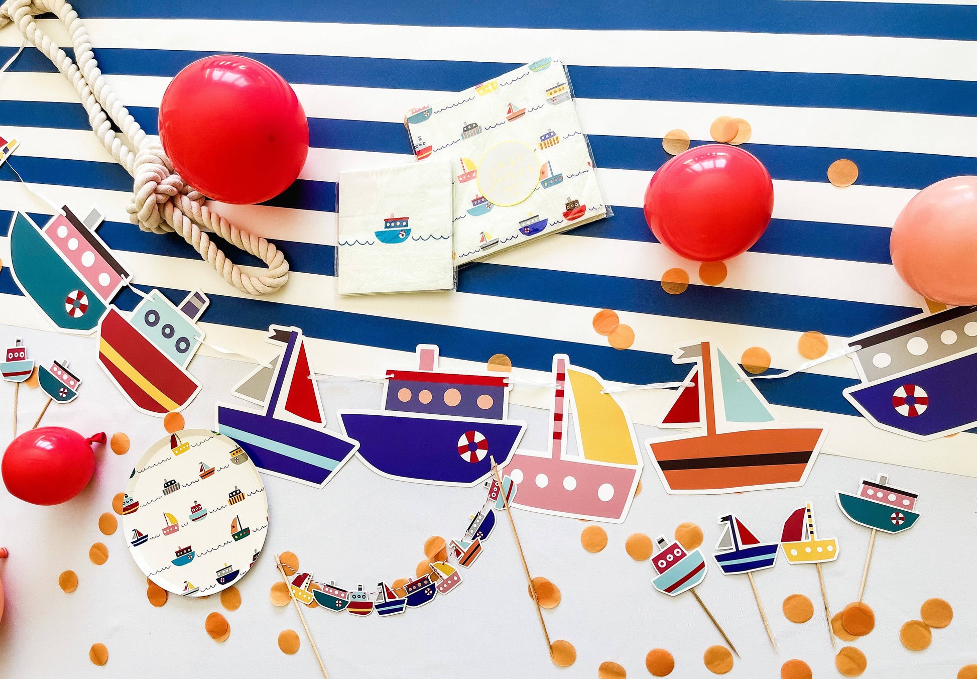 These mini sailboat toppers instantly elevate your dessert table and pair beautifully with our coordinating plates, napkins, and party decor.