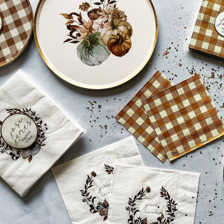 Fall Pumpkin Give Thanks Large Paper Napkins (16pcs) - Josi James - Large Napkins