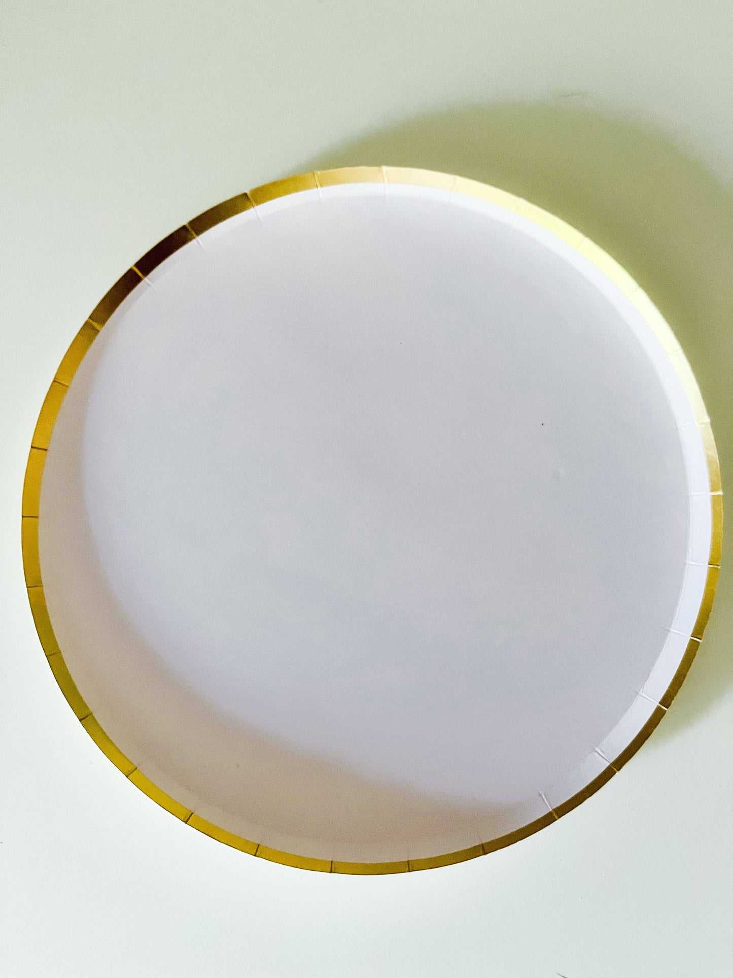 Classic Light, Pastel Pink 9 inch plate with gold foil trim. Sweet light pink disposable paper plate, perfect for girl's baby shower, kids or children's birthday party, bridal showers and more!