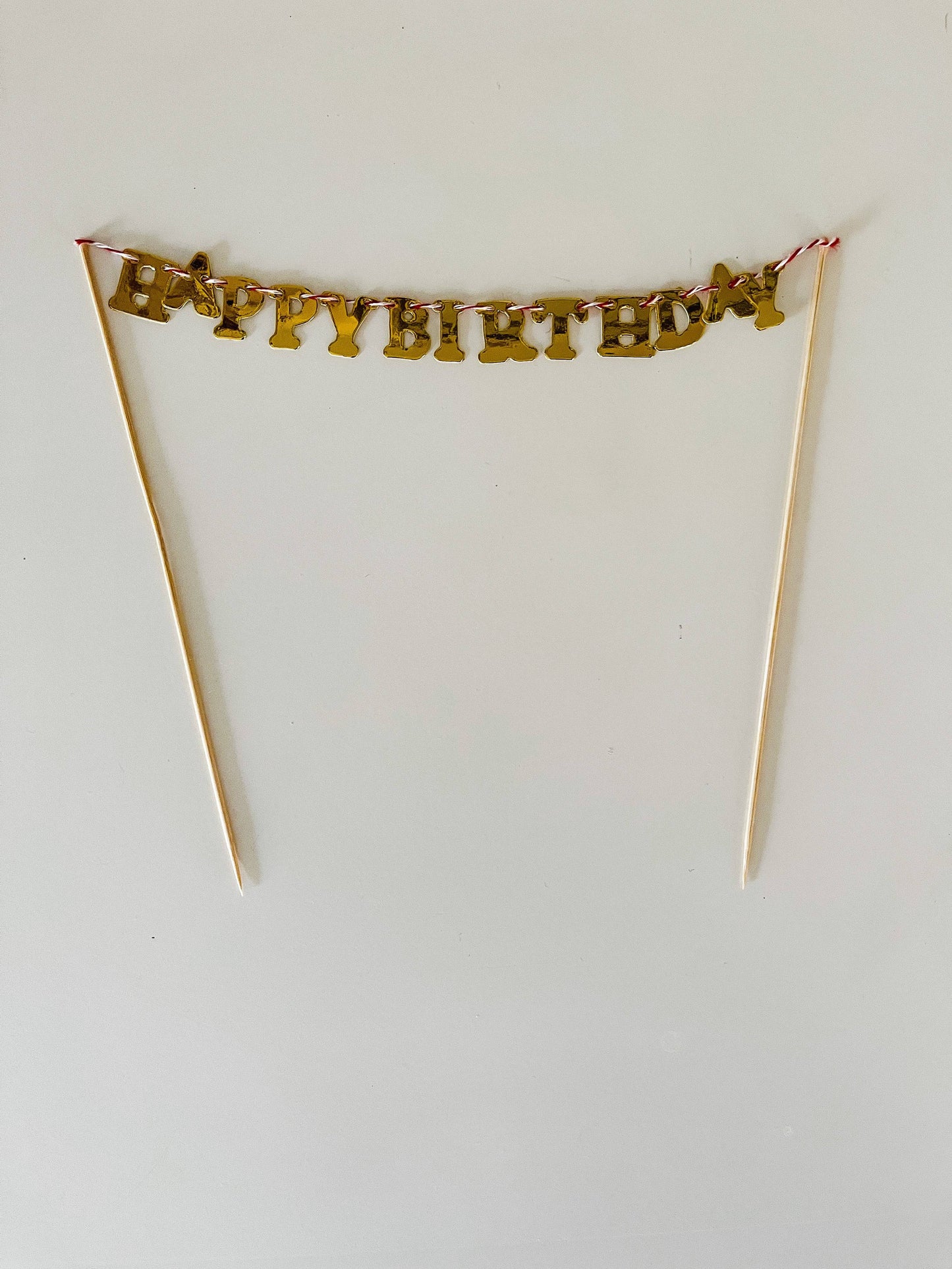 Our Gold Happy Birthday Cake Banner brings instant glam to any birthday dessert. This elegant double-stick cake topper features shimmering gold letters that spell out “Happy Birthday” in a classic, cheerful font. Pre-strung between two sturdy wooden sticks, it’s ready to pop into cakes, cupcakes, or party desserts with zero effort.