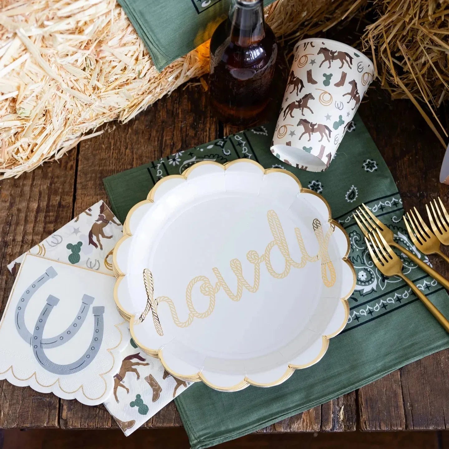 Howdy Cowboy Paper Party Cups – 12oz, Set of 8 | Western Themed Party Drinkware - Josi James - Cups